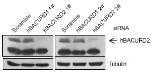 Figure S14. Validation of the hBACURD2 Antibody and Specific Knockdown of hBACURD2 by hBACURD2 siRNAs HeLa cells were treated with scramble siRNA or each of the two independent hBACURD1 or hBACURD2 siRNAs (see Table S2). Total cell lysates were immunoblotted with the hBACURD2 antibody (upper panels). Tubulin blots shown in the lower panels are loading controls. |