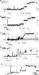 Figure 2. G45C and V38C residues are modified by MTSEA–biotin-X. Segments of patch clamp records of G45C and V38C after the addition of MTSEA–biotin-X to the bath solution at a final concentration of 1 or 0.5 mM. Arrows at the bottom of each panel mark step changes in conductance that are consistent with the reaction of a cysteine residue with MTSEA–biotin-X. Changes in current levels were determined with the all-point histograms shown on the right side of each panel. (A) Inside-out recording of two G45C channels. Nine conductance changes are evident, consistent with modification of 9 of 12 available G45C residues. The first modification event occurred 20 s after the bath application of 1 mM MTSEA–biotin-X. (B) Outside-out recording of a single G45C channel illustrating five conductance changes, consistent with modification of five of six available cysteine residues. The first modification event occurred 6 s after the bath application of 1 mM MTSEA–biotin-X. (C) Inside-out recording of a single V38C channel illustrating four conductance changes consistent with modification of four of six available subunits. The first modification event occurred 18 s after the bath application of 1 mM MTSEA–biotin-X. (D) Outside-out recording of a single V38C channel illustrating six conductance changes. It is not clear if the final conductance change, marked by an asterisk, resulted from a reaction, gating event, or channel loss; thus, at least five of six cysteine residues are modified. The first modification event occurred 64 s after the bath application of 0.5 mM MTSEA–biotin-X. The longer time to the first modification event correlates with the lower concentration of MTSEA–biotin-X used in this record (0.5 mM vs. 1.0 mM) than was used in the previous records. (D1) This is an enlargement of the boxed region of D. The event marked by the single asterisk is a Vj-gating transition that occurred after modification of two cysteine residues. The event marked by two asterisks is a loop-gating transition that occurred after three cysteine subunits were modified by MTSEA–biotin-X. Note that the loop- or slow-gating event involves a series of small amplitude transitions giving the appearance of a complex gating event with a measurable time constant, whereas the Vj-gating event occurs as a single fast step between the open state and a subconductance state. Zero current level indicated by the dashed line is the leak-subtracted current. |