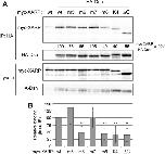 Figure 4. XARP constructs with disrupted centrosomal localization have decreased Dsh binding. A: A representative co-immunoprecipitation experiment showing total (“Lysate”) and co-precipitated (“IP”) Dsh and XARP proteins. Intensity of XARP and Dsh bands in “IP” lanes was measured using ImageJ software. Ratios of XARP/Dsh band intensities are presented relative to wild-type XARP binding (100%). B: Average ± S.D. from five independent experiments. **P with wild-type <0.01. ΔC, XARPΔC construct.