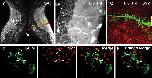 Radial glial processes exhibit rapid structural motility. A, Time series of a glia expressing EGFP-F imaged in vivo at 5 min intervals. The RGB merge of the time points with the red, green and blue boxes demonstrates the degree of structural remodeling seen. B, C, Higher magnification of the two boxed regions in A. Scale bars: A, 10 μm; B, C, 2 μm. |