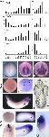 Fig. 2. Expression of FoxO genes. (A) Temporal expression patterns of FoxO1, FoxO3, FoxO4 and FoxO6 genes during Xenopus embryogenesis and relative expression in adult tissues. Amount of transcripts was analyzed by semi-quantitative RT-PCR using RNA isolated from embryos at indicated developmental stages (Nieuwkoop and Faber, 1967) or from adult tissues. Expression levels are shown in relative units. Histone H4 was used as internal control. (B-M) Spatial patterns analyzed by whole mount in situ hybridization of FoxO4 (B-H) and FoxO6 (I-M). (B) 2-cell stage, lateral view. (C) Stage 17, anterior view. (D) Stage 21, anterior view. (E) Stage 23 embryo hybridized with a FoxO4 sense probe, anterior view. (F) Magnification of the head of an embryo, stage 29. (G) Stage 35/36, lateral view. (H) Transversal section of the head, stage 38. (I) Stage 22, anterior view. (J) Stage 27, lateral view. (K) Magnification of the head at stage 28, anterior view. (L) Stage 32, lateral view. (M) Stage 30, anterior view. Red arrows indicate the eye field, yellow arrows indicate the olfactory pits. ba, branchial arches; hg, hatching gland; hm, head mesenchyme; l, lens; nt, neural tube; ov, otic vesicle; pd, pronephric duct; pl, presumptive lens; pr, presumptive retina; r, retina. |
