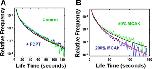 Figure 3. Distribution of tubulin lifetimes in spindles with FCPT (blue circles). A best fit to Equation 1 is included (red line, τ = 71 ± 3 s). The data and best fit were normalized to have an area of 1.