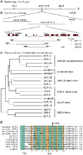 Jones, Functional genomics of the nicotinic acetylcholine receptor gene family of the nematode, Caenorhabditis elegans. 2004, Pubmed