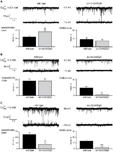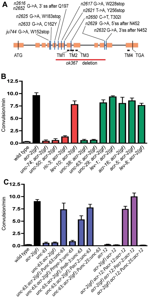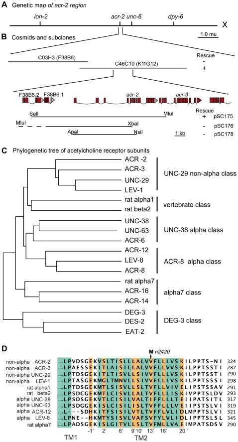Squire, Molecular cloning and functional co-expression of a Caenorhabditis elegans nicotinic acetylcholine receptor subunit (acr-2). 1995, Pubmed , Xenbase