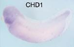 chd1 (chromodomain helicase DNA binding protein 1) gene expression in Xenopus laevis embryo, assayed via in situ hybridization, NF stage 28, lateral view, anterior left, dorsal up. |