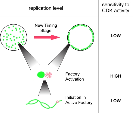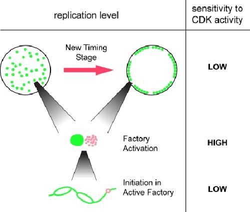 Replication factory activation can be decoupled from the replication timing program by modulating Cdk levels.
