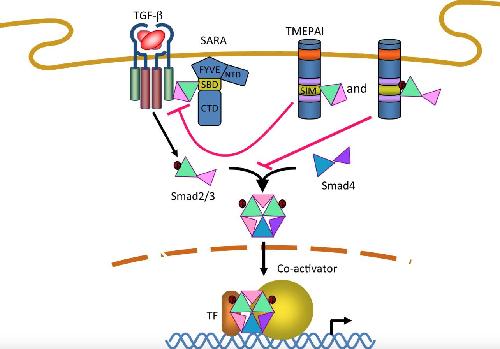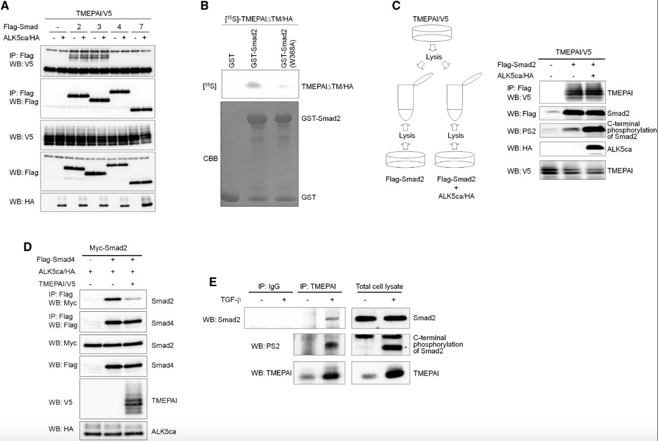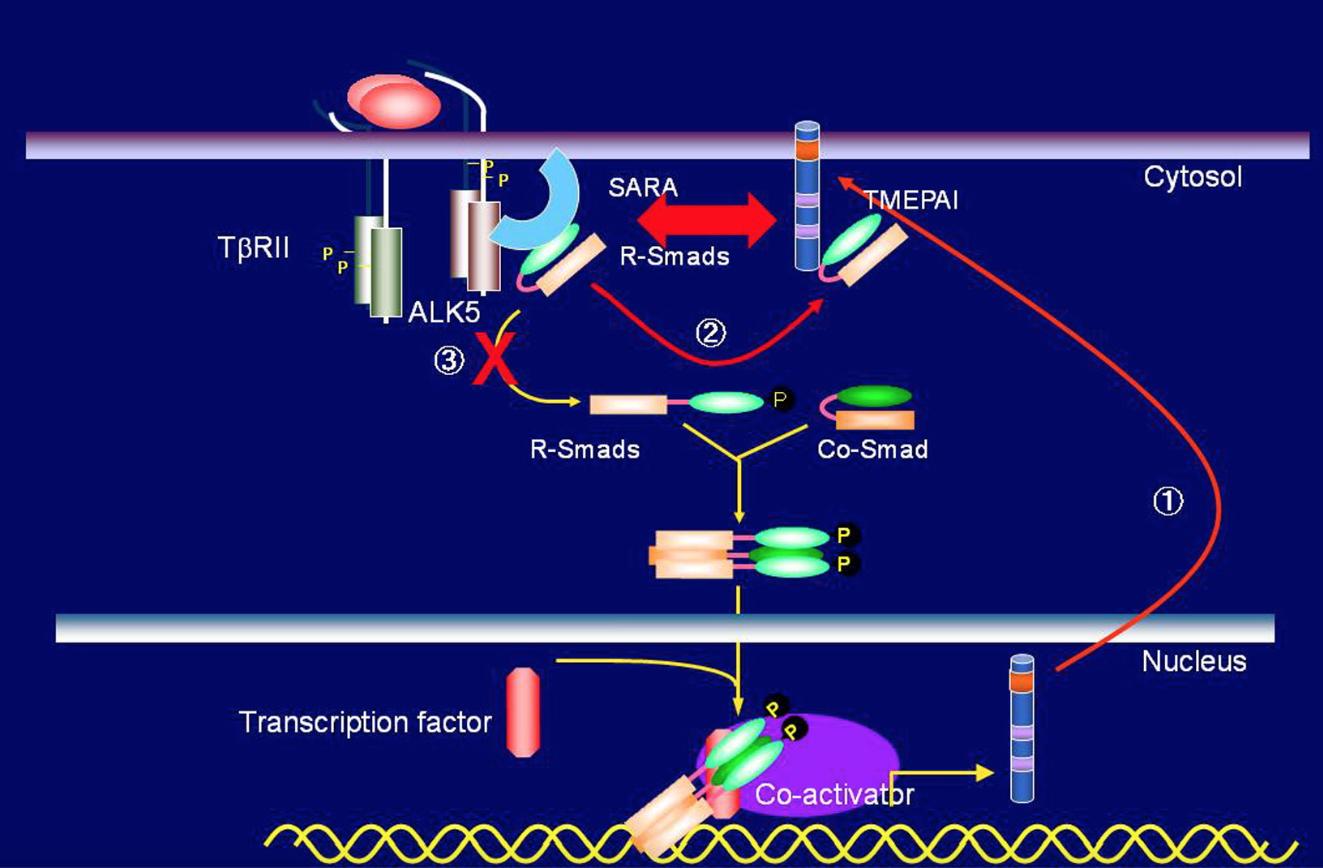TMEPAI, a transmembrane TGF-beta-inducible protein, sequesters Smad proteins from active participation in TGF-beta signaling.