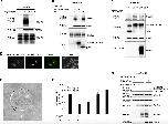 Figure S8. TMEPAI Is Mainly Localized in Golgi Apparatus and Endosomes (a-c) The subcellular distribution of TMEPAI was determined as follows: after MCF10A1 cells were transfected with TMEPAI/V5 for 40 h, cells were fixed with 2% paraformaldehyde and 0.2% glutaraldehyde in PHEM buffer (240 mM PIPES, 100 mM Hepes, 40 mM EGTA and 8 mM MgCl2 [pH6.9]) for 2 h at room temperature. After washing with PBS, the cells were pelleted and embedded in 12% gelatin. The pellet was cut into 1-mm3 cubes, cryoprotected in 2.3 M sucrose and snap-frozen in liquid nitrogen. Ultrathin cryosections were labeled with mouse anti-V5 monoclonal antibody (1:50 dilution), and indirectly labeled with 15 nm protein A-gold particles via a rabbit anti-mouse IgG bridging antibody (1:200 dilution). The grids were contrasted with uranyl acetate, embedded in methylcellulose and viewed with a Philips CM 10 transmission electron microscope. (a) Golgi apparatus. (b, c) Endosomes. Arrows indicate representative localization patterns of TMEPAI. (d-f) TMEPAI can co-localize with Smad2 in endosome-like structure. (d) NMuMG cells were transfected with TMEPAI/V5 and cultured for 24 h. After treatment of cells with 5 ng/ml TGF-β for 1 h, cells were fixed. Then, experiments were performed as described in Fig. 3i. Smad2 was translocated into nucleus upon TGF-β stimulation in cells lacking ectopic TMEPAI, whereas cells expressing TMEPAI showed partial co-localization between TMEPAI and Smad2. We hardly detected co-localization between TMEPAI and Smad2 without TGF-β stimulation. (e, f) 293T cells were transfected with TMEPAI/V5 and Flag-Smad2 and cultured for 40 h. Then, cells were treated according to Suppl. Fig. 8a-c. Ultrathin cryosections were labeled with mouse monoclonal anti-V5 antibody and indirectly labeled with 15 nm protein A-gold particles. After sections were fixed, they were incubated with rabbit monoclonal anti-Smad2 antibody (Cell Signaling), followed by incubation with 10 nm protein A-gold particles. The grids were contrasted with uranyl acetate, embedded in methylcellulose and viewed with a Philips CM 10 transmission electron microscope. Arrows indicate small dots corresponding to Smad2 in endosomes. We could also detect colocalization of TMEPAI with Smad2 in endosomes using the cryosections of intestinal polyps from APCMin/+ mice by an electron microscope (data not shown). |