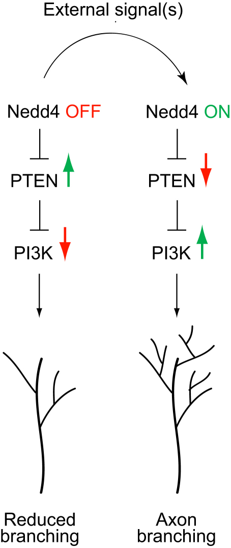 E3 ligase Nedd4 promotes axon branching by downregulating PTEN.