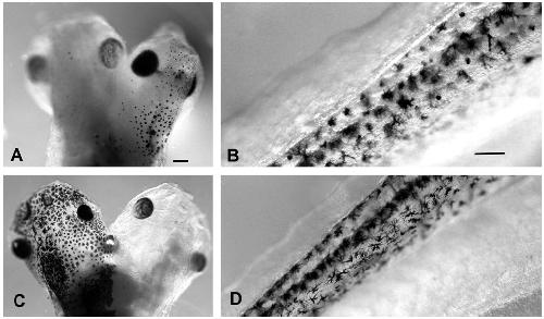 Fig. 1. Melanophores in stage 35/36 periodic albino Xenopus following neural crest
