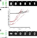 Figure 5. Predicted experimental outcomes of single needle experiments for different types of matrices assuming flux forces can be transmitted to the needle by lateral microtubule cross-links. (A–C) Thin red lines represent the matrix, whereas green lines represent spindle microtubules. Thicker sections along the microtubules depict the movement of a photoactivated mark on the microtubule lattice to illustrate poleward flux over time. The blue shapes within the spindle midzone represent aligned metaphase chromosomes. The dashed line runs through the midpoint of the stationary needle tip, as seen in cross-section (depicted as a white annulus with a filled, black center). See “Does a spindle matrix play a mechanical role in spindle length regulation?” for explanations of each cartoon.