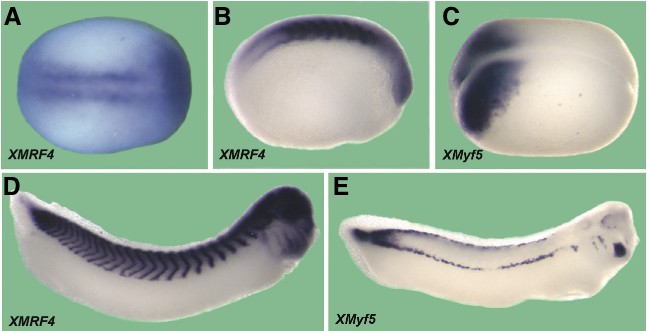 Expression of the myogenic gene MRF4 during Xenopus development.