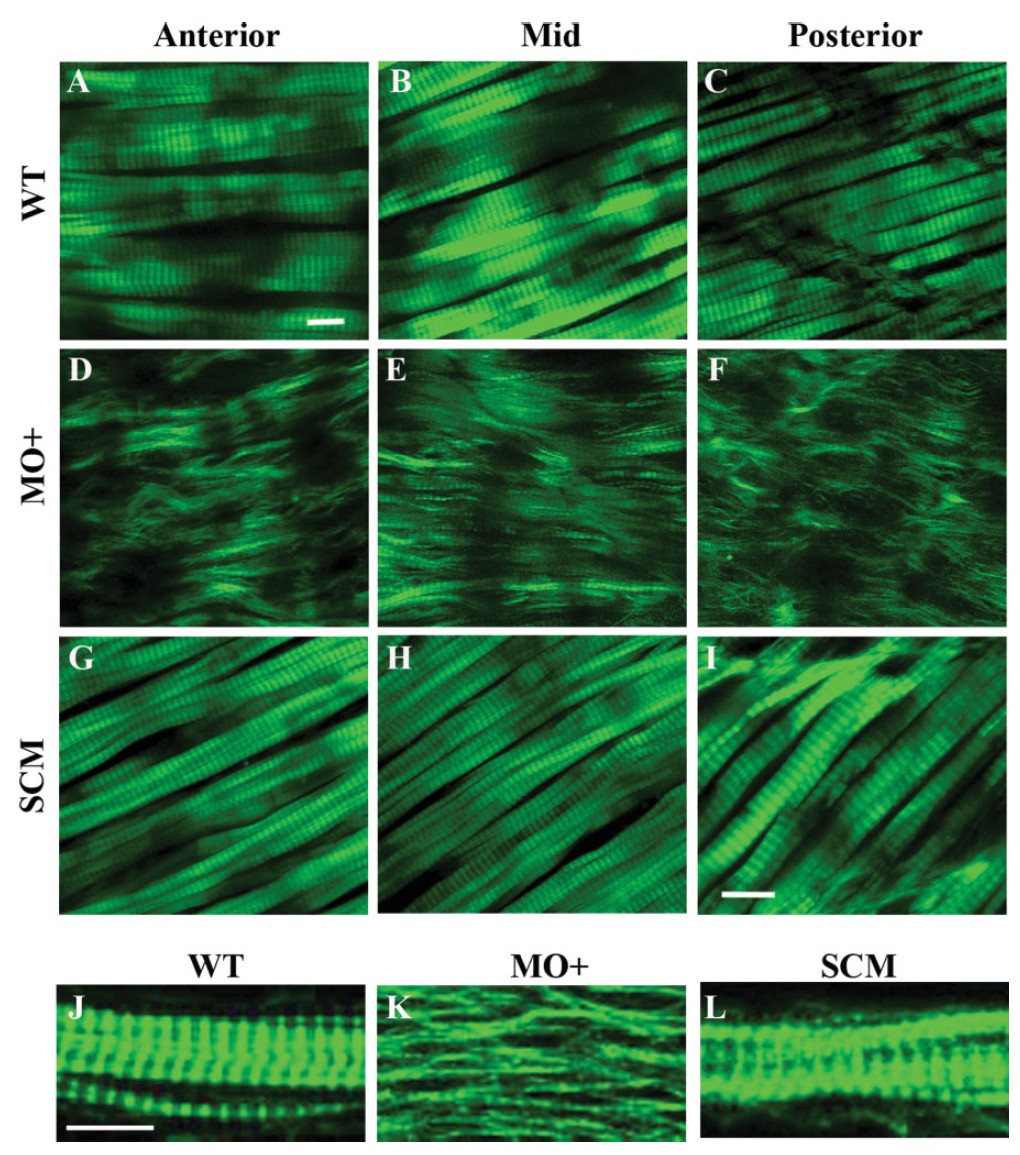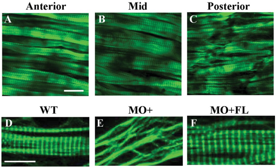 sarcomere organization. A�C: Images from embryos rescued with C�Ala mRNA in MO� background.