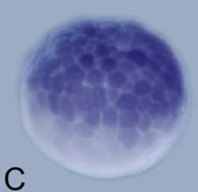zmynd8 (zinc finger, MYND-type containing 8) gene expression in Xenopus laevis embryo, assayed via in situ hybridization, NF stage 3, horizontal view, animal up. |