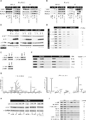 (G) Fourier transform mass spectrometry (FT/MS) spectrum of LVSEAYEVLSDSKK∗, triply charged ion m/z 537.28 selected for fragmentation with high-accuracy mass with TSA (left) or without TSA (right). Acetylation of K61 is indicated with an asterisk (∗).