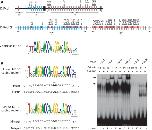 Figure 5. NRSEs in the protocadherin clusters of zebrafish, human and mouse. (A) Zebrafish protocadherin clusters. The color vertical bars represent individual variable exons, whereas the black vertical bars at the 3′ end of each subcluster represent the constant exons. Red and blue ovals in the intergenic regions of the zebrafish clusters represent the canonical and non-canonical NRSEs, respectively. The dotted lines in the Pcdh2 cluster indicate undetermined sequence gaps. The consensus sequence of zebrafish canonical NRSEs is displayed as a WebLogo plot. Dr: Danio rerio. (B) EMSA for NRSEs located in the protein-coding sequence of human and mouse protocadherin clusters. The consensus sequences are displayed as WebLogo plots. Upper-case letters represent the NRSE sequence, and the lower-case letters represent the flanking sequences. The asterisks indicate the guanine dinucleotide which was mutated to adenine dinucleotide in NRSE mutants. Hsα5m represents the mutant NRSE in the protein-coding sequence of the Hsα5. Hs: Homo sapiens, Mm: Mus muscus. Autoradiography of EMSA: arrows indicate the protein–oligonucleotide complex of the full-length fugu NRSF/REST (lanes 1, 3, 5 and 7) or the super-shifted complex in the presence of the anti-Myc antibodies (lanes 2, 4, 6 and 8). fN: nuclear extracts from pCMVmyc-fNRSF-transfected HEK293 cells; un: nuclear extracts from mock (pCMVmyc) transfected HEK293 cells. |