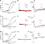 Figure 14. Features of measured and modeled Ig. Q-Vt relationships for IgON (A) and IgOFF (B). Time constants–Vt relationships for IgON (C) and IgOFF (D). Relationship of exponential fit coefficients to Vt for IgON (E) and IgOFF (F). |