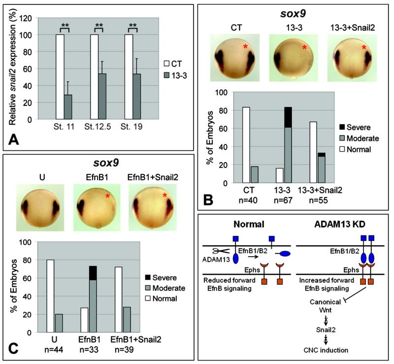 ADAM13 controls CNC induction through regulation of EfnB and Wnt signaling