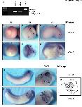 Supplementary Fig. 2. (A) Expression of the phospho-tyrosine binding RTK adapter proteins xGrb2, xShcA, and xShp2 at early gastrula stage Xenopus embryos (NF stage 10.5) was confirmed by RT-PCR. Whole mount in situ hybridization for xShcA and xRor2 at NF stage 12 (B and C), 20 (D and E), 24 (F and G) and 36 (H and I). Structures showing overlapping expression include the spinal chord (arrow) at stage 20 and 24, cranial ganglia V (trigeminal) from stage 20 onward, VII (facial) from stage 24 onward, IX (glossopharyngeal), X (first vagal) and X2,3 (second and third vagal) at stage 31/33. O = otic vesicle; also illustrated in the schematic drawing. At stage 20 xShcA was expressed in the profundal and trigeminal ganglion (cranial ganglion V) and the spinal chord; xRor2 was also detected in these structures but overall showed a broader expression including also the neural tube, brain and neural crest. At stage 24, xRor2 expression was maintained in the migrating neural crest and became more pronounced in the profundal and trigeminal ganglion, which also expressed xShcA. Expression of xShcA in the spinal chord continued till tadpole stages. At tadpole stages, both xShcA and xRor2 were expressed in all cranial ganglia including ganglia V, VII (facial ganglion), IX (glossopharyngeal ganglion), X and X2,3 (first, second and third vagal ganglion, Supplementary Fig. 2H and I). A schematic drawing illustrating the positions of cranial ganglia in Xenopus is shown in Supplementary Fig. 2J (modified after {Schlosser, 2000 #1037}. |