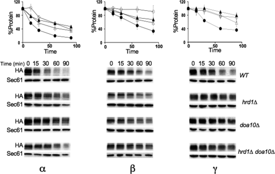 Huyer, Distinct machinery is required in Saccharomyces cerevisiae for the endoplasmic reticulum-associated degradation of a multispanning membrane protein and a soluble luminal protein. 2004, Pubmed
