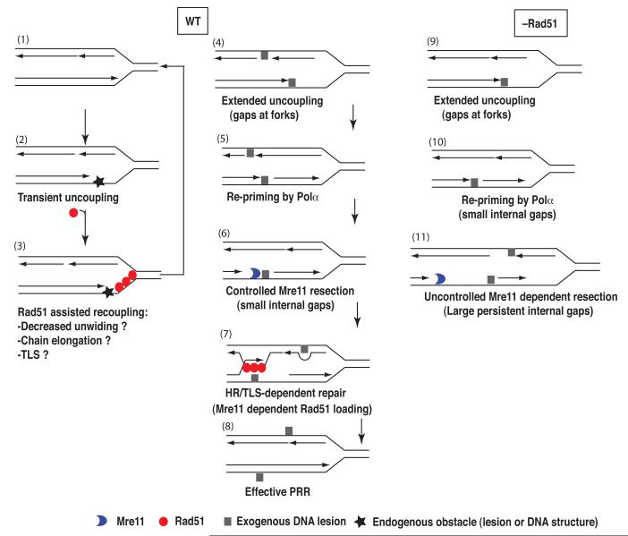 Figure 6. A model for possible roles of Rad51 during DNA replication. See text for explanation.