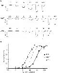 Figure 3. Relationship between the average EC50 values and the presumed number of 9′ LT mutations.Each point is plotted according to the stoichiometry we suggest for each cell type and subunit ratio. The assumed stoichiometry is stated on the plot. The linear relationship between the EC50 values and the number of mutated subunits confirms that the stoichiometry we assume is plausible.