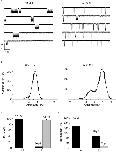 Figure 6. Single-channel properties of α3β4 receptors expressed from extreme ratios in HEK293 cells.(A) Examples of outside-out currents elicited by 5 µM ACh, from cells transfected with an α3 to β4 cDNA ratio of 1∶9 (left) and 9∶1 (right). Patches were held at −100 mV. The histograms of fitted amplitudes corresponding to these recordings are shown in (B). These are fitted with Gaussian curves to give the peak current amplitudes and the areas under each curve (for these two patches the values are 2.7±0.3 pA, area 100% for 1∶9; 2.6±0.5 pA, area 27% and 3.9±0.4 pA, area 73% for 9∶1). The histogram on the left (C) shows the proportion of bursts (as % of the total number of bursts from all experiments, pooled) at each chord conductance for the two subunit ratios. The histogram on the right (D) shows the difference in the duration of the bursts to different conductances for the two ratios.