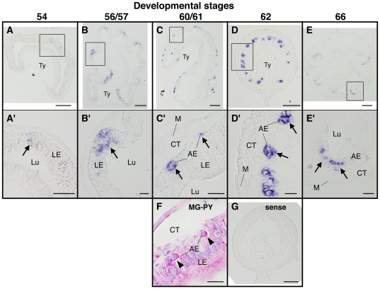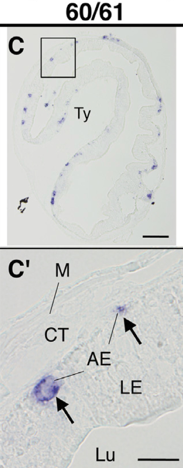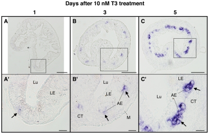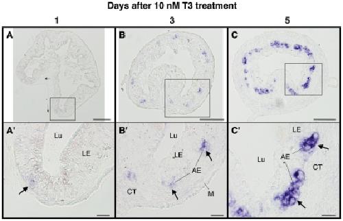 Spatio-temporal expression profile of stem cell-associated gene LGR5 in the intestine during thyroid hormone-dependent metamorphosis in Xenopus laevis.