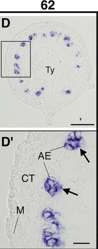 Metamorphosis-associated and region-specific expression of calbindin gene in the posterior intestinal epithelium of Xenopus laevis larva.