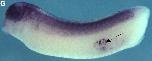 Fig. 1. xKIFI3B expression characteristics during oogenesis and embryogenesis. (AâG) xKIF13B mRNA was detected by whole mount in situ hybridization. During oogenesis, xKIF138 mRNA localizes to the tip of the vegetal cortex; A. early (stage II) oocytes; and B, late (stage IIIâIV) oocytes. At the 4-cell stage, xKIFI3B mRNA is enriched in the granular germ plasm islands at the vegetal pole (C, vegetal pole view). At gastrula stage, the transcript is detected in the region of the primordial germ cells (D, blastoporus view). During neurulation, xKIF13B mRNA starts to be expressed in the neural tube and in the cranial neural crest cells (E, anterior view, and F, dorsal view). At tailbud stage, xKIFI3B mRNA is expressed in PGCs (arrow), neural crest cells, brain, spinal cord and notochord (G, lateral view of the embryo with the head to the left). |