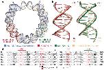 Figure 4. The Widom 601 sequence forms a 145 bp nucleosome core particle. (a) Superposition of 601 nucleosome core particle DNA (in blue) and human αsatellite nucleosome core particle DNA (peach) in simplified cartoon representation. The major differences between the two DNA structures at SHL +5 and −5 are highlighted in red and green respectively. (b) and (c) Superpositions of the two DNA structures at SHL +5 and −5 respectively. Numbers shown are the base positions from the nucleosome dyad. (d) Alignment of DNA present in nucleosome core particle crystal structures shows 5 bp major and minor grooves blocks. The 5 or 6 bp major groove blocks at SHL ±2 and ±5 accommodates differences in the DNA structures (red arrows). DNA dyad indicated by black arrow. Human α-satellite sequence alignments based on Fig.1 of Ong et al13.