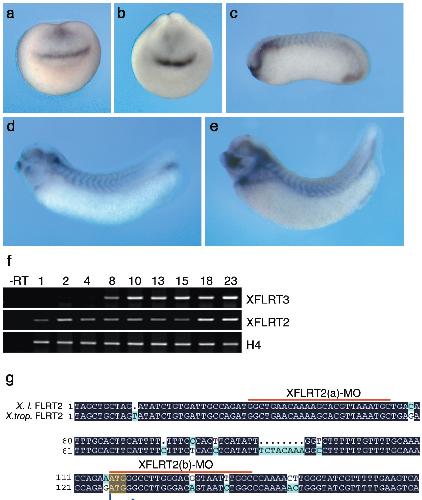 development. a-e, Whole-mount in situ hybridization of XFLRT2. Expression
