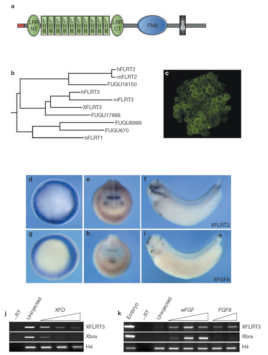 neurulae, (e, h, anterior view) and tadpoles (f, i). (j, k) Regulation of XFLRT3
