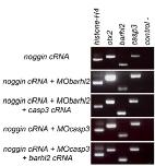 ig. S6. otx2, Barhl2, and casp3 transcripts are present in anteriorized ACs. RT-PCR analysis. casp3 and barhl2 transcripts are present in st 20 anteriorized ACs prepared in different conditions. Otx2 is used as an anterior neuroectodermal marker, Histone H4 is a positive control, and water is a negative control. |