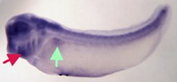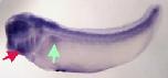 greb1 (growth regulation by estrogen in breast cancer 1) gene expression in Xenopus laevis embryos, NF stage 28, as assayed by in situ hybridization, lateral view, anteriorleft, dorsal up.