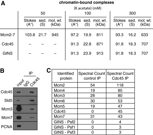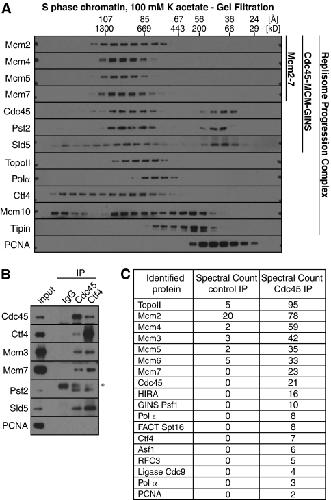 Moyer, Isolation of the Cdc45/Mcm2-7/GINS (CMG) complex, a candidate for the eukaryotic DNA replication fork helicase. 2006, Pubmed