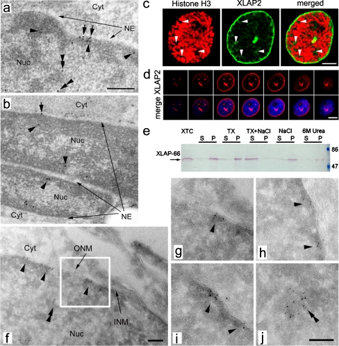 Embryonic and adult isoforms of XLAP2 form microdomains associated with chromatin and the nuclear envelope.