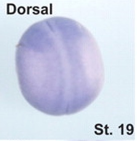mtss1.2 (metastasis suppressor 1, gene 2) gene expression in Xenopus laevis embryo, assayed via in situ hybridization, NF stage 19, dorsal view, anterior upper left.
