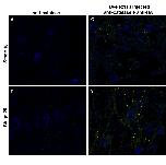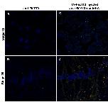 Figure 6. Microinjecting HA-Pex11β RNA increased PMP70 immunofluorescence levels during X. laevis embryogenesis. Both control (A and B) and HA-Pex11β injected (C and D) embryos at developmental stages 10 (A and C) and 20 (B and D), were fixed then sectioned for immunohistochemical analysis in somites for PMP70. At stage 10 PMP70 protein is undetected in somitic mesoderm under control conditions (A), whereas following microinjection of HA-Pex11β PMP70 protein is detectable in punctate structures (C). At stage 20, PMP70 protein was detected in both control and following microinjecting HA-Pex11β (B and D). An HA antibody was also used to confirm the ectopic presence of HA-Pex11β. DAPI (blue), PMP70 (green), HA-Pex11β (red), colocalization of HA-Pex11β and catalase (yellow). Images were taken at 60magnification. |