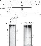 Figure 3. Replication fork leading strands progress up to the psoralen crosslink.(A) Sequence of the plasmid around the psoralen ICL with restriction sites used in B and C. Double arrows indicate the size of the replicated strands (lagging or leading) spanning the ICL site for the control or repaired plasmid. Single arrows indicate the progression of the leading strand to the ICL for the crosslinked plasmid. The strand size is shown above each product. (B) Mapping of leading strand progression for pTUC and pTUC-PSO after 65 min of incubation in Xenopus egg extracts in the continuous presence of [α-32P]-dATP. Plasmids were digested by the indicated enzymes and analyzed on 10% polyacrylamide denaturing gel. Faint bands visible in lanes 3 and 4 likely result from a star activity of Sac II. The two 28 nt size indicators are at two different positions due to gel smiling. (C) Mapping of leading strand progression for pTUC and pTUC-PSO at 25, 35, 50, 65, 85, 95, 120 and 180 min. Plasmids were digested with EcoRI and BamHI and subjected to migration on a 10% polyacrylamide denaturing gel. 28 nt and 46 nt fragments correspond to the DNA size expected for the leading strand arriving at the psoralen from the EcoRI side or BamHI side, respectively.
