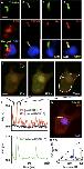 Shh and second-messenger signaling converge at the neuronal primary cilium. (A) Immunostaining of immature spinal neurons grown in vitro for 7 h. Acetylated tubulin staining is shown in green, and DAPI staining is shown in blue. (A) IP3R (red) localize at the base of the primary cilium. (B) TRPC1 (red) localizes to the primary cilium. (C and D) Gαi protein (red) localization at the primary cilium expands when Shh signaling is enhanced. Numbers correspond to the mean SEM percent of acetylated tubulin labeling that overlaps with Gαi staining at the primary cilium in the absence (C) or presence (D) of 100 nM SAG for 4 h. n = 10 cells per condition; *P < 0.005. (E and F) Simultaneous Ca2+ and IP3 imaging reveals synchronous transients. (E) Images correspond to a time before (Left), during (Center), and after (Right) the spike indicated in the trace in F. (F) Traces represent the changes in fluorescence intensity for IP3 and Ca2+ probes in regions of interest (ROI) indicated in E, Right. (G) IP3 transients are apparent at the primary cilium. The cell is the same shown in E, stained with DAPI (blue) and anti-acetylated tubulin (green) and overlapped with IP3 frame (red) corresponding to the peak of the transient shown in E, Center. (Scale bars, 10 μm.) (H) Synchronicity of Ca2+ and IP3 transients. Graph represents onset time of Ca2+ spikes vs. onset time of IP3 transients during simultaneous recordings. Inset represents the histogram of the difference between onset times; Δt = tIP3 − tCa2+.