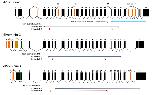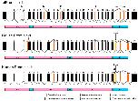 Figure 6. Comparison of exon organization of prominin-1 gene from X. laevis, mouse, and human. It appears that the gene structure of prominin-1 is evolutionarily conserved in these animals. Alternative splicing of the prominin-1 gene is seen in all three animals, however, with considerable differences in the choices of alternative exons and the splicing patterns. Homologous exons of xlProminin-1 and mouse and human prominin-1 are aligned for comparison of their exon organization. Constitutive exons are marked in black. Alternatively spliced exons are marked in orange. Spliced forms identified in cDNA clones are indicated by jointed lines. Note that homologous exons are assigned with the same number to maintain consistency with preexisting nomenclature [2,31]. Exons 26b and 27 are conserved and alternatively spliced in all three species. Alternative exons 3a, 8a, 11a, and 28a of xlProminin-1 are not found in mouse or human prominin-1. Splicing of alternative exons 4a results from using an alternative 3′ splice site in exon 4, and is only observed in mouse prominin-1 [31]. Alternative exon 19 of xlProminin-1 is alternatively spliced in mouse prominin-1, but no evidence has been found that this exon is alternatively spliced in human prominin-1. Alternative exon 25 of human prominin-1 is not found in prominin-1 from the mouse or X. laevis. The alternative exon 26a of mouse prominin-1 and the alternative exons 25 and 26a of human prominin-1 are not found in xlProminin-1. Exons 3, 9, and 28 of mouse prominin-1 are alternative, but appear to be constitutive in X. laevis. The region encompassing exons 24 to 28 of xlProminin-1 and homologous sequences of the prominin-1 gene from the mouse and human are regions of extensive alternative splicing. Diagrams of translated proteins are aligned with their coding sequences. Divisions of proteins by predicted transmembrane domains are marked. |