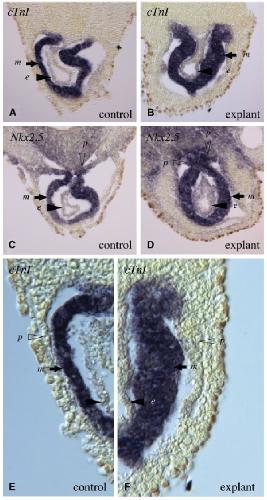 through the hearts from embryos (A, C, E) and ventral explants (B,