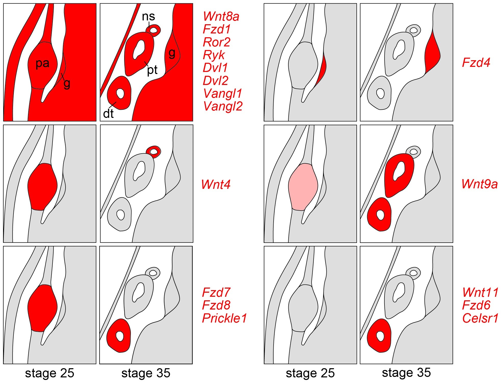 Expression of Wnt signaling components during Xenopus pronephros development.