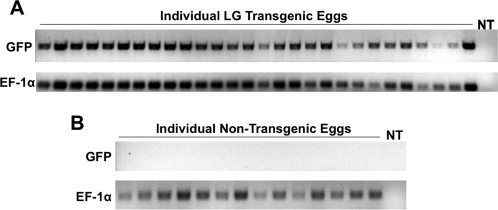 Xenopus laevis provides a unique animal model, alternative to mouse, to study immunology. Even though, several methodologies have been developed for the generation of transgenic Xenopus, to date none have been adapted for the X. laevis/gilli (LG) isogenetic clones that are essential for immunological studies. Since LG clones are generated via gynogenesis, transgenic methods using transgene integration into the sperm nuclei are not suited. Therefore, we have tested three alternative methods for LG transgenesis: the phiC31 integrase, the Sleeping Beauty transposase, and the I-SceI meganuclease. All three techniques produced transgenic LG clones; however, the I-SceI meganuclease was most effective. It resulted in high transgenesis efficiency (35-50%), bright nonmosaic GFP expression as well as stable germline transmission with 100% of the progeny carrying the transgene. Production of transgenic LG clones will allow us to modulate immune gene expression and further strengthen X. laevis as a biomedical model.
