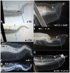 Figure 4. Phenotypes of tails damaged at different sites along the AP axis of the spinal cord.Dorsal is up and posterior is to the right in all images. All tails were damaged at stage 40 and are shown at stage 48. Orange arrowheads point to the location of laser damage; the blue line indicates the amputation plane. Scale bar = 1 mm. (A) The typical upward bend phenotype of tails damaged in the shoulder spinal cord (shSC). (B) Regenerate for tail damaged in the posterior spinal cord (postSC). (C) Image of the more severe phenotype caused by ablation of the anterior spinal cord (antSC). (D) Dorsal view of the tail shown in C illustrating the lateral bending of tails damaged in the antSC. (E and F) A tail damaged at two sites, the antSC and the shSC. This tail shows both characteristics of tails damaged at either shSC or antSC, including a simple upward bend, and LR bending. (G) The “pigtail” spiraling at this tail tip is unique to tails that have been damaged at both antSC and shSC.