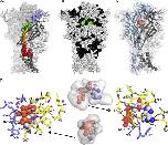 FIGURE 2. Homology model and ATP docking for the P2X1 trimer. Images were generated in PyMOL. A, overview of the P2X1 homology model, highlighting residues 52–96. Residues studied by cysteine-scanning mutagenesis are displayed as spheres in rainbow colors (red, Glu52–Ser59; orange, Gly60–Ser64; yellow, Val65–Val67; green, Lys68–Lys70; blue, Gly71–Thr75; indigo, Gln76–Leu80; violet, Gly81–Gly96) for the P2X1 subunit in the front of the picture. The overall structure of this subunit is shown in a black schematic representation, whereas the two P2X1 subunits in the background are shown in a surface and grid representation, respectively. B, mapping of mutation data onto the P2X1 homology model. All residues are shown as spheres. Residues colored black have been tested for their contributions to ATP sensitivity. Of these, residues that make substantial contributions to ATP sensitivity are highlighted in green (Lys68, Lys70, Phe92, Thr186, Asn290, Phe291, and Arg292). Residues not tested are shown in white. To give a more complete picture, previously published data for residues Glu181–Val200 and Ser286–Ile329 have been included in addition to residues Glu52–Gly96. C, overview of the P2X1 model showing the ATP binding site and the predicted ATP binding pose. The three subunits of P2X1 (residues 33–352) are shown in schematic representations in blue, black, and gray, respectively. One docked ATP molecule located at the interface between two subunits is displayed as spheres in CPK colors. The overall shape of the P2X1 model is indicated by the semitransparent surface for all three subunits. D, zoom into the ATP-binding site from the front (left) and rear (right). The best scoring docked pose of ATP is shown as spheres. Residues within 3 Å of ATP are shown as sticks, the blue and yellow colors indicating different subunits of the P2X1 trimer. Predicted hydrogen bonds are plotted as dotted lines in black. The middle panel illustrates the available space in the ATP binding cavity as determined by a hollow for both views. The volume of the cavity is shown as a transparent surface representation with the docked ATP in spheres. |