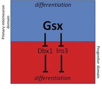 Fig. 4. A model for promotion of neuronal differentiation by Gsx proteins.