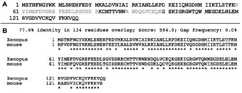 of Xenopus laevis hypothetical protein MGC81232 revealed that the Xenopus protein was 77.6%
