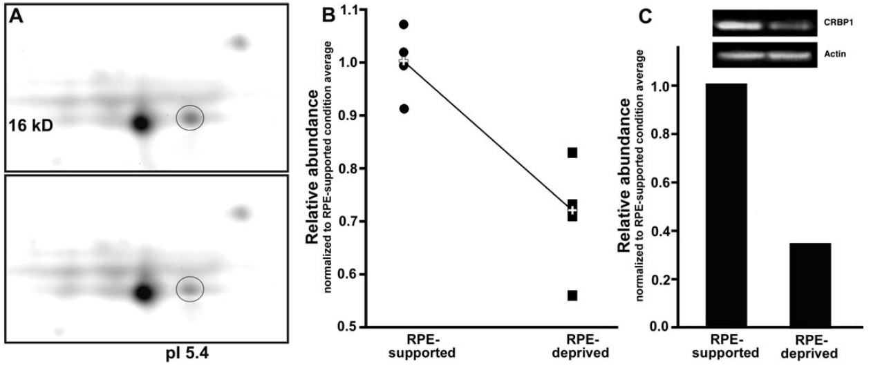 from RPE-supported retinas. This difference is significant at p ¼ 0.039. C: Semi-quantitative Western